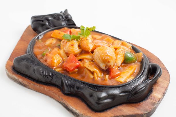 Avec poulet, porc laminé