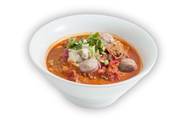 Soupe saté aux boulettes de boeuf et viande